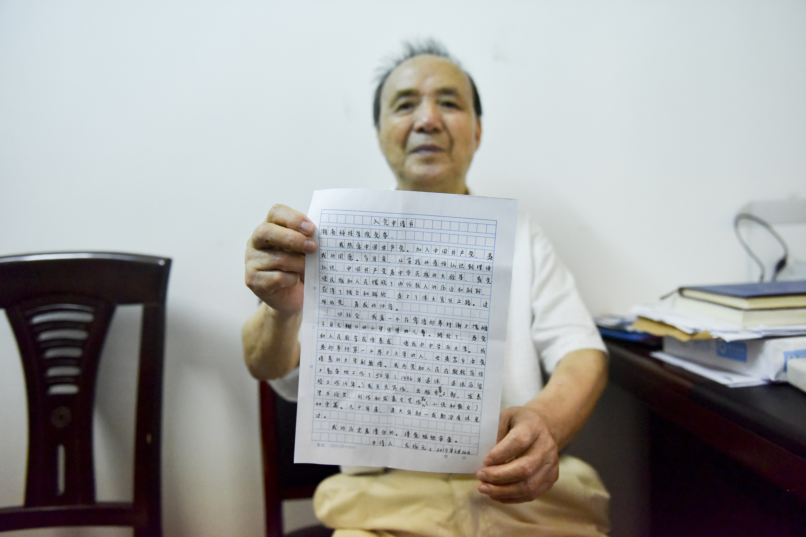 近日,龙福元受到了“不忘初心,牢记使命”主题教育活动的感染,在建党节即将来临之际,他决定再写入党申请书,递交给党组织,期待能实现入党的愿望。他说,“我敬党,爱党,一直都不忘初心,我的历史是清白的,我愿意接受党组织对我的审查。”