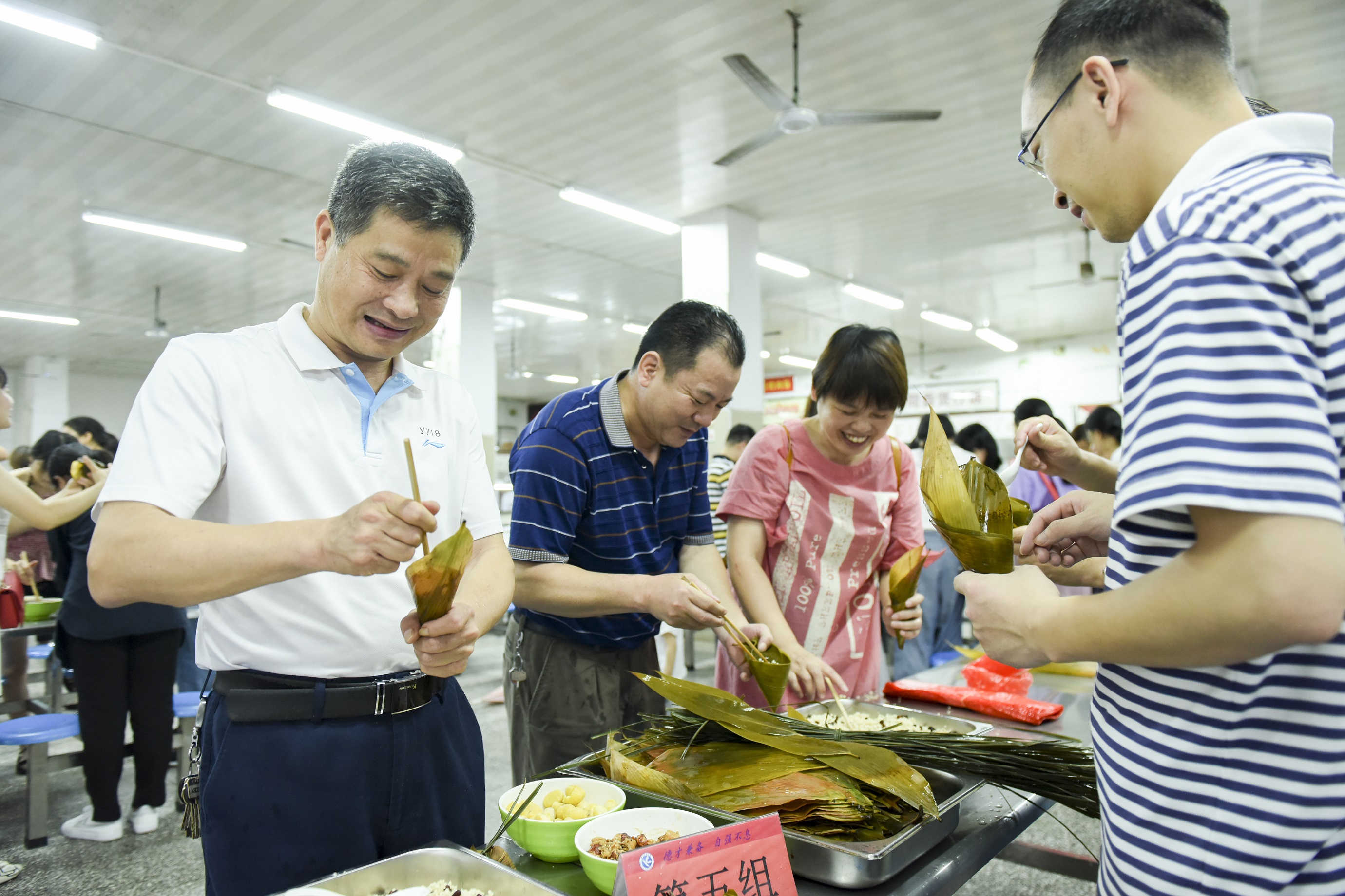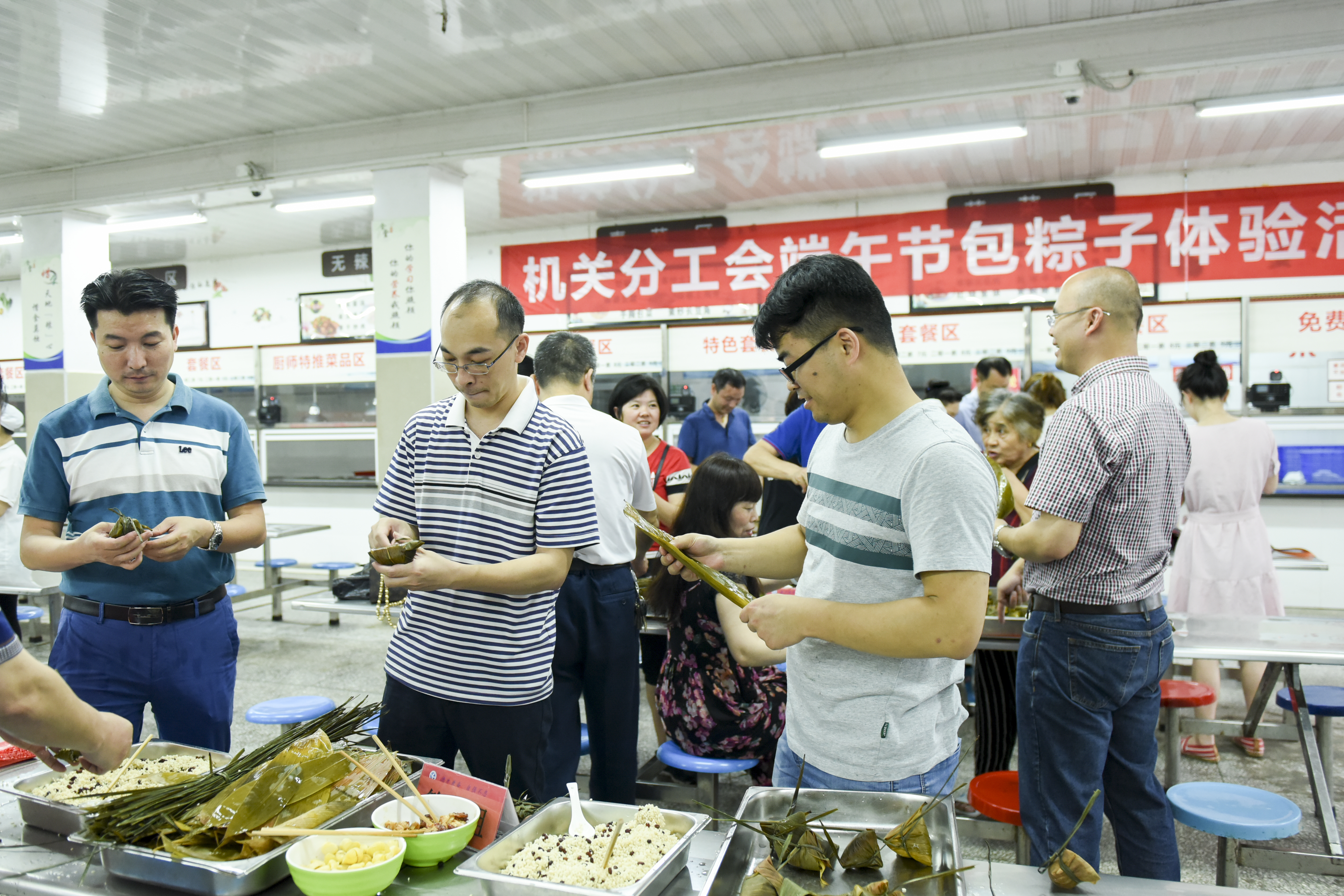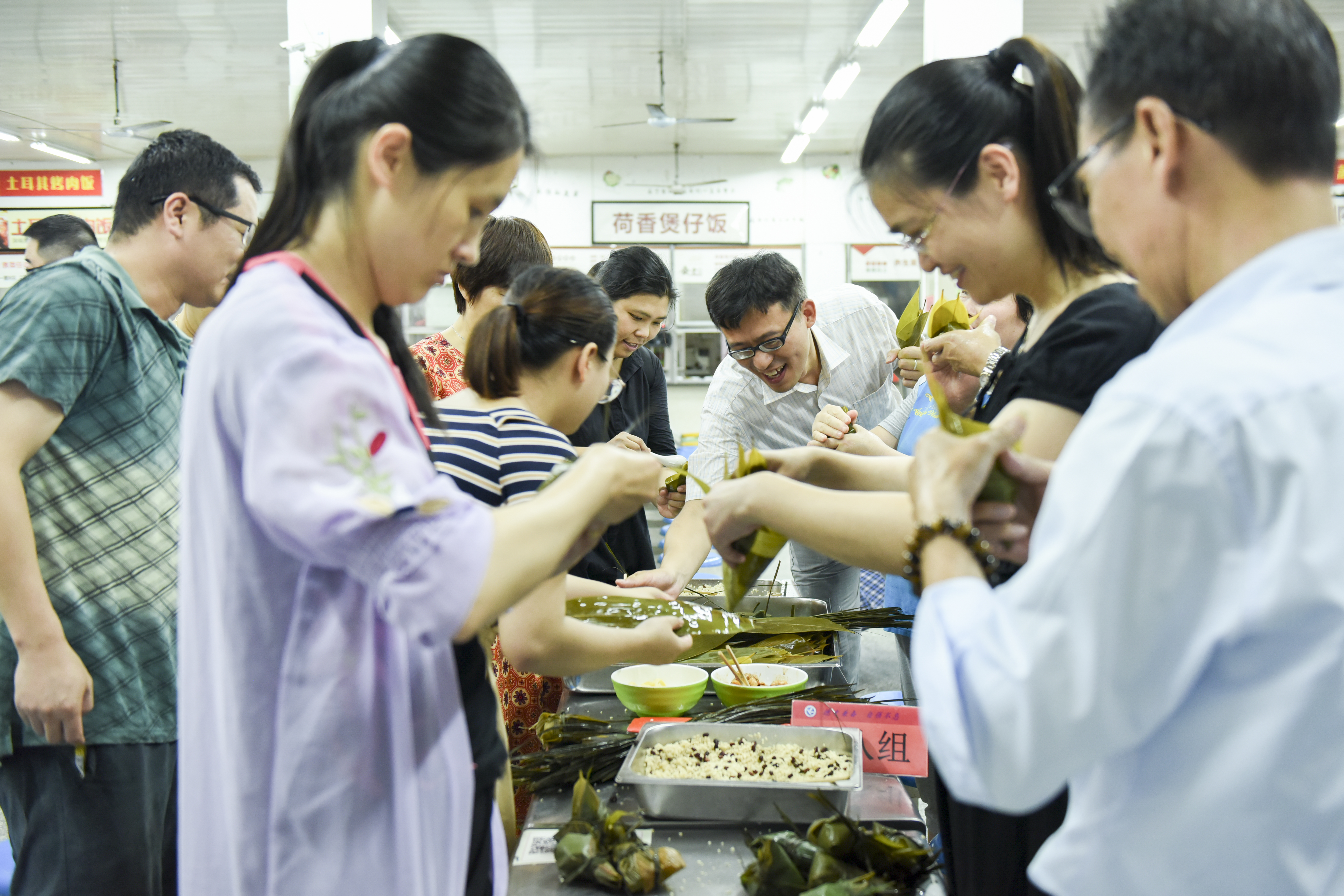 6月6日,安博官网app食堂,教职工在包粽子。当日,安博官网app机关分工会举办端午节包粽子体验活动,教职工们自购食材,一起包粽子、煮粽子、吃粽子,增进感情交流,感受民俗文化,共度端午佳节。