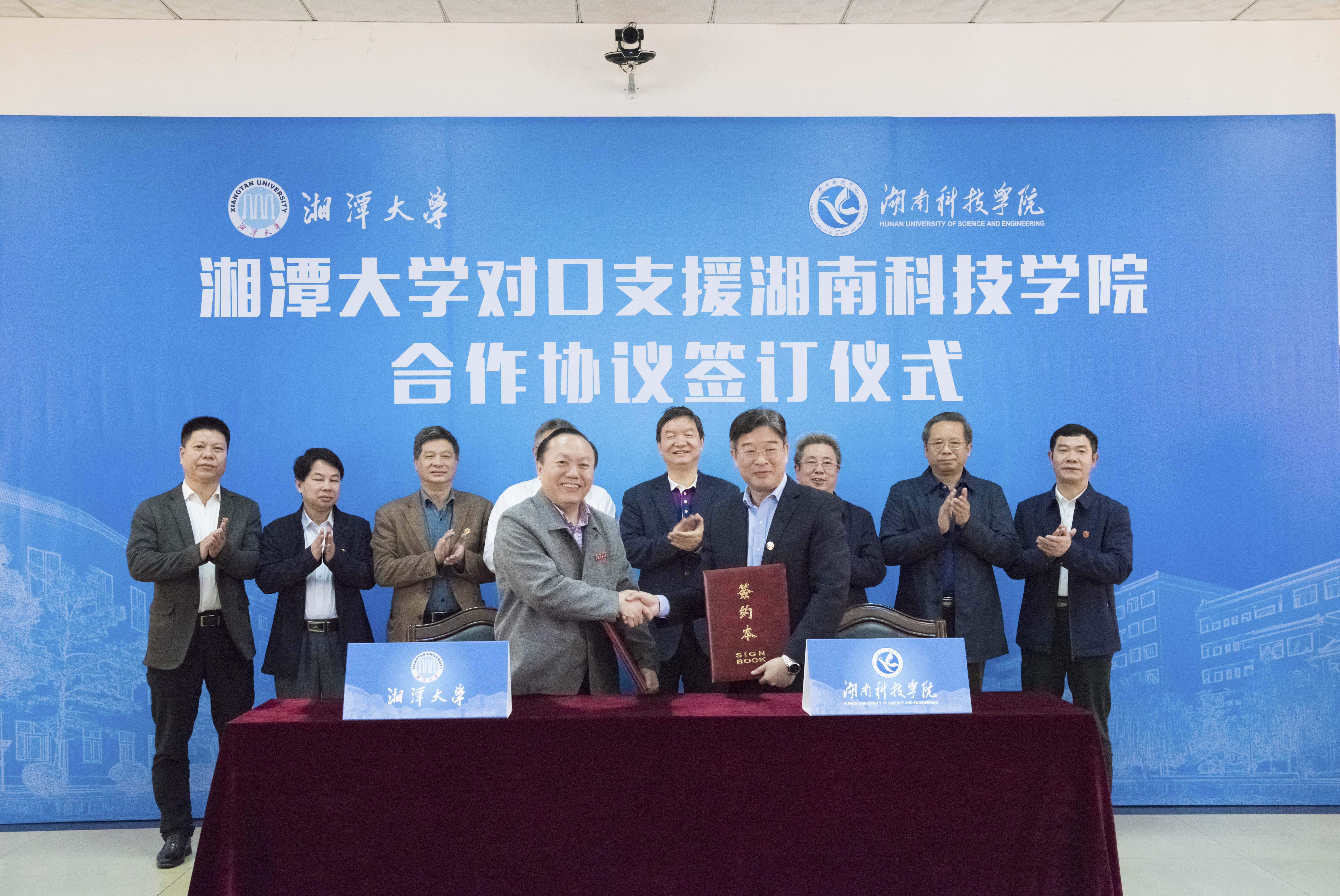 随后,湘潭大学副校长刘长青与我校副校长宋宏福分别代表各自学校签署对口支援与合作框架协议。