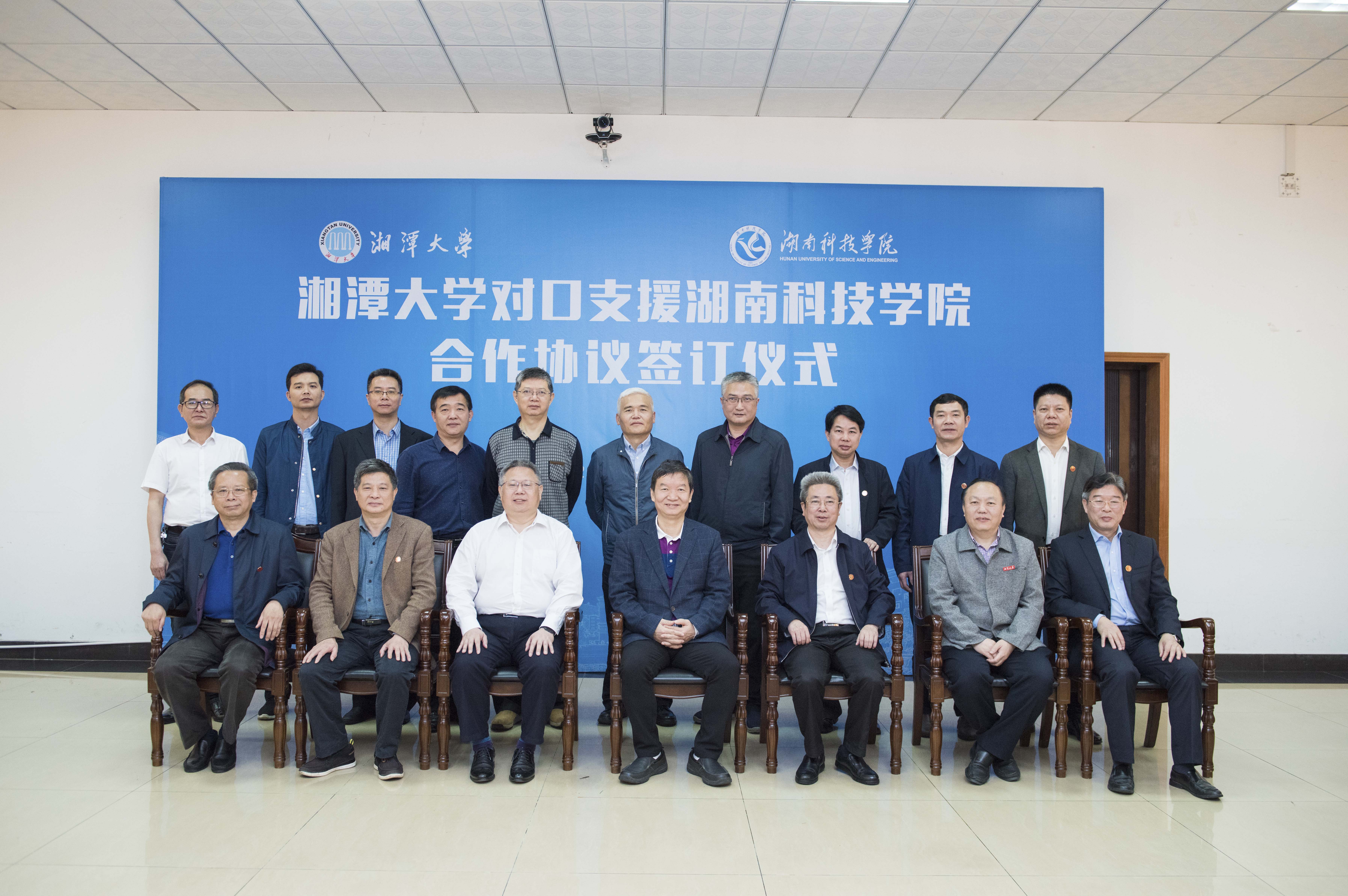本网讯 晴日暖风生麦气,绿阴幽草胜花时。5月10日上午,湘潭大学与我校举行对口支援签约仪式。省教育厅党组成员、主任督学、副厅长、工委委员唐亚武,省教育厅高教处长曾力勤、科技处长吴跃辉,省人民政府学位委员会办公室主任颜胜利,湘潭大学党委书记黄云清,湘潭大学党委委员、副校长刘长青,我校党委书记、校长曾宝成,校领导唐艳明、宋宏福、郑山明、李常健、吴小林、程智开,学校各教学学院、各职能部门负责人参加仪式。仪式由宋宏福主持。