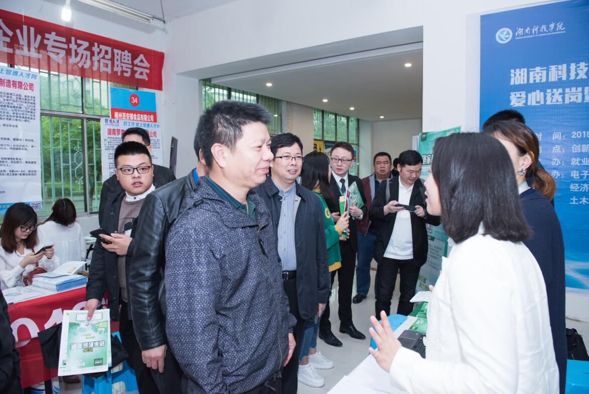 本次招聘会吸引了中国建筑第二工程局深圳分公司、中国二十二冶集团有限公司、青岛啤酒股份有限公司、蓝思科技股份有限公司、中公教育集团、步步高商业连锁股份有限公司、广东荣旭智能技术有限公司及郴州市经开区企业代表团等一大批知名企业参会。招聘会现场,广大毕业生与用人单位进行积极交流,询问岗位需求和职业发展等情况。招聘会后,共27家用人单位举行了企业宣讲会。