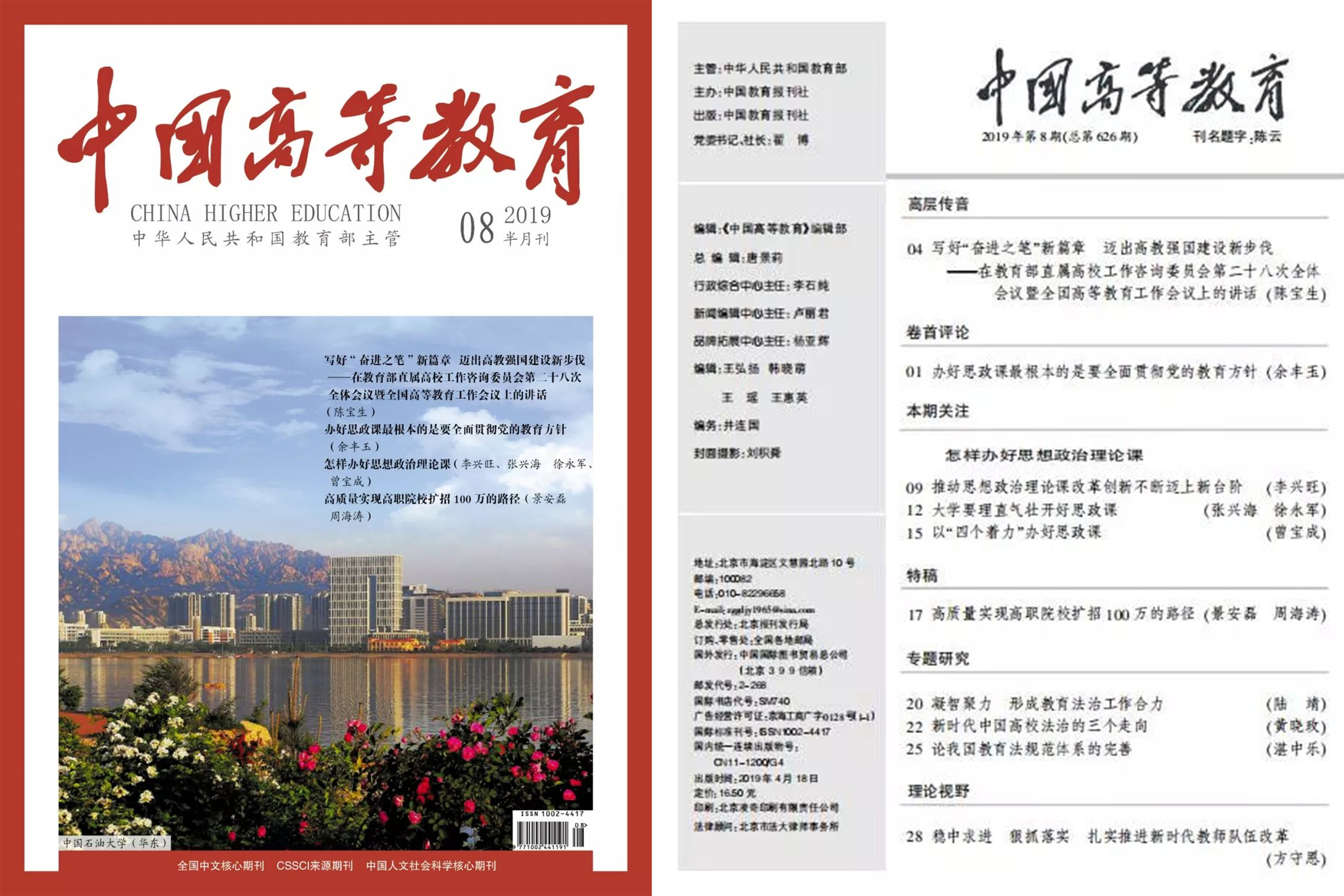 《中国高等教育》由中华人民共和国教育部创办并直接主管,是全国高等教育导向性、综合性理论刊物,是全国中文核心期刊,CSSCI来源期刊。