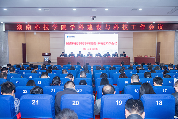 宋宏福作题为《 乘势而为 错位发展 全面提升学科建设水平》的工作报告。他总结回顾了近三年学科建设与科技工作所取得的成绩,指出学科建设存在的短板与不足,分享了学科建设与科技工作的几点体会,并明确了今后学科建设与科技工作的思路与举措。他表示,学校将继续坚持以习近平新时代中国特色社会主义思想为指导,按照“优化结构、强化优势、扶持重点、突出特色、注重应用、创建品牌”的学科建设和科技工作思路,瞄准一个目标,坚持人才为本、突出重点、特色发展等三条原则,推进学科(方向)带头人引领计划、标志性成果支持计划、服务地方行动计划、科教协同育人计划、学校资源聚集计划等五项计划,进一步凝练学科研究方向,打造教学学科团队,助力人才培养质量,提升学科核心竞争力,以优异的成绩续写好湘科院的“奋进之笔”“精彩之笔”。