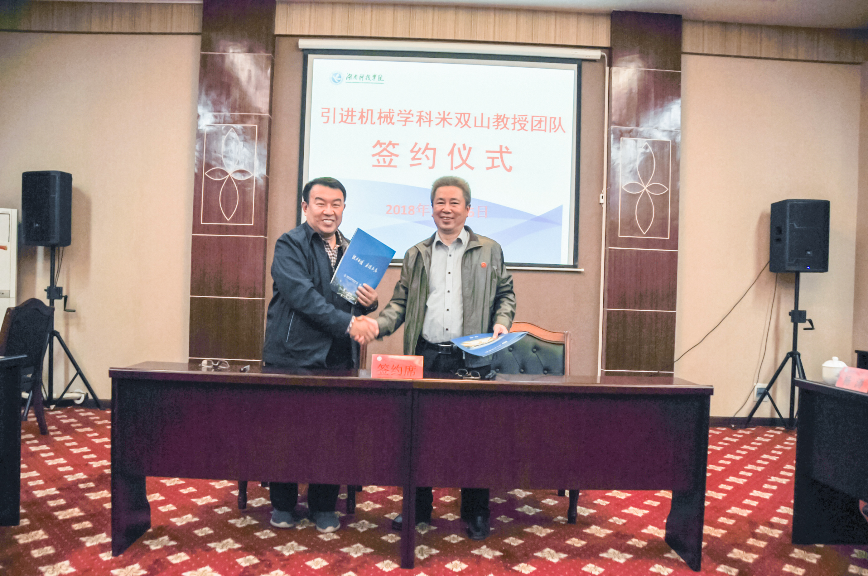 米双山教授团队6名成员,均为教授博士,分别毕业于清华大学、北京理工大学等国内知名高校,长期从事高等教育教学和科研工作,在机械工程领域有丰富的学术成果和较大的学术影响。签约后,米双山教授发表热情洋溢的讲话。他说,团队经过慎重选择,最终决定全职落户安博官网app,团队成员深深感到学校浓厚的学术氛围和干事创业的工作环境,校园环境优美,领导同事热情友好,办学理念先进,发展前景美好。他向大家描述机械工程学科未来3-5年的发展规划,表示有信心也有实力建设好机械工程学科及相关专业。