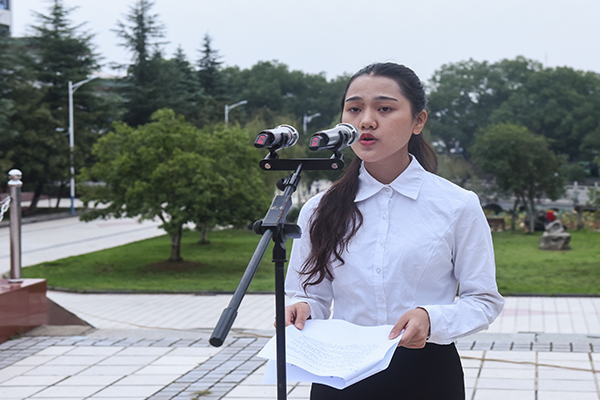 人文与社会科学学院2018级新生莫燕群作了题为《我的中国心》的发言,她表示要志存高远,德才并重,把个人的奋斗与国家的前途、民族的命运结合在一起,在实现中国梦的伟大实践中创造的出彩人生。