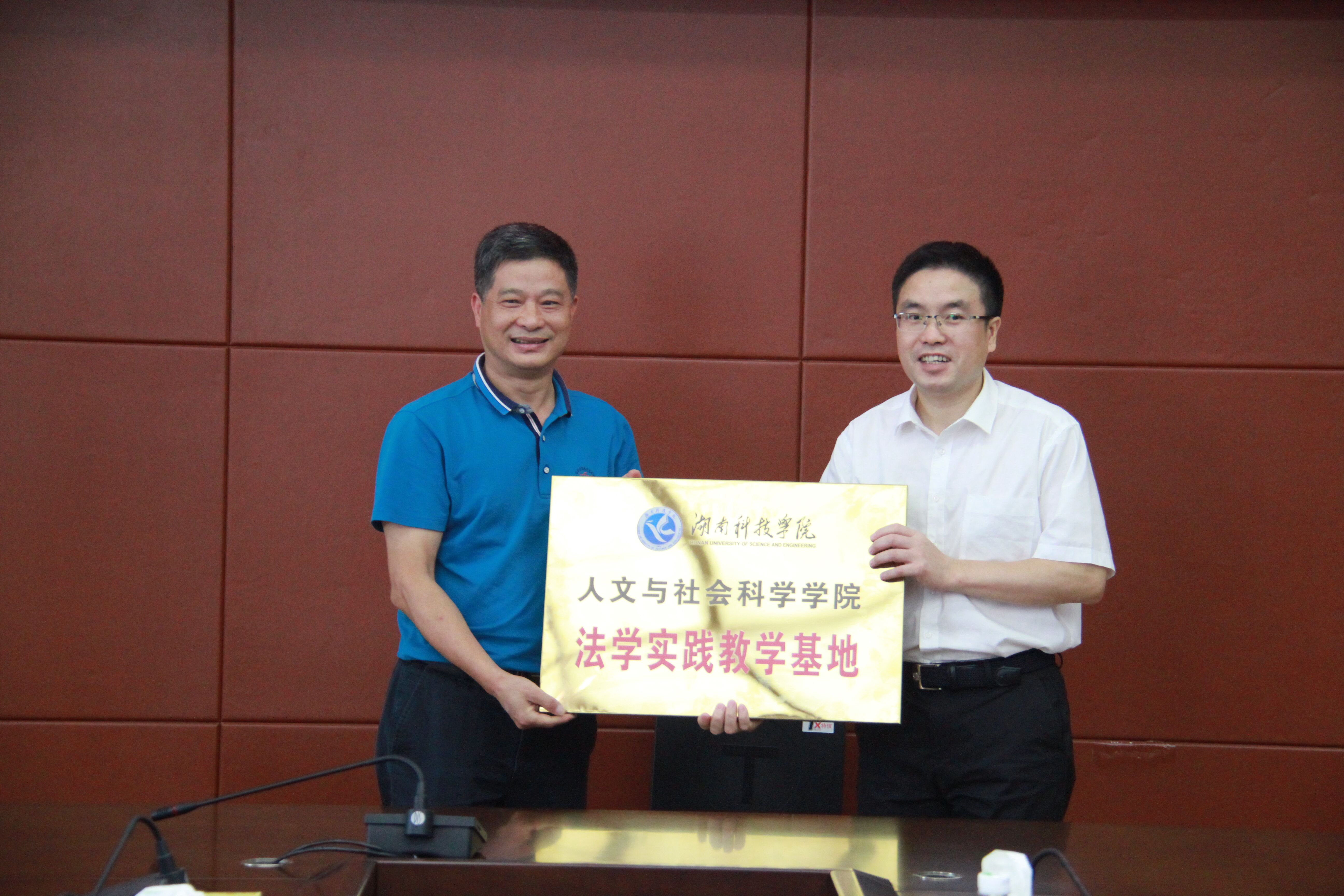 签约仪式上,潘雁飞与唐阳陵签订《安博官网app法学实践教学基地协议书》,唐艳明向唐阳陵授予“安博官网app人文与社会科学学院法学实践教学基地”牌匾。