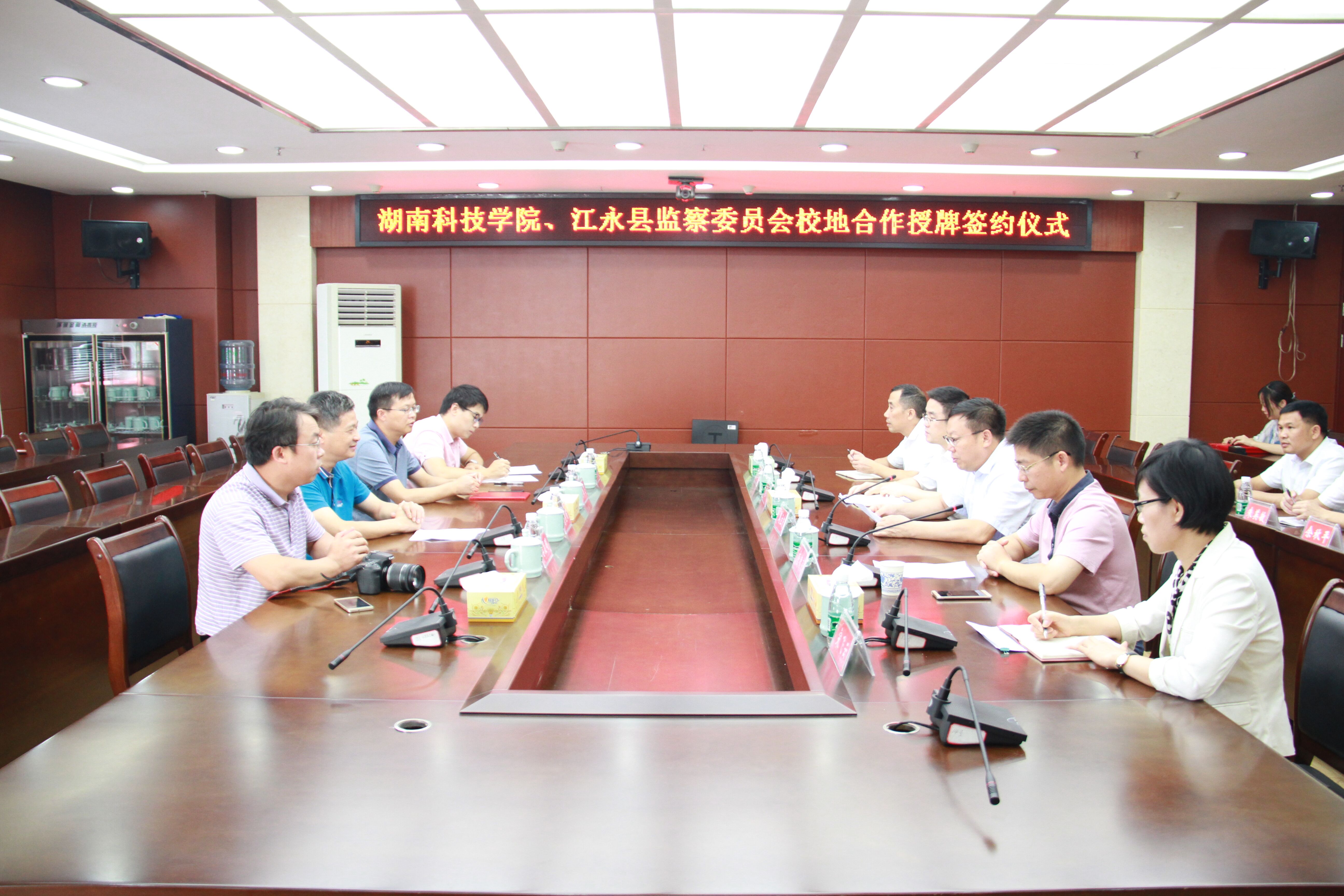 本网讯(通讯员 肖文涛) 9月12日,我校与江永县监察委员会校地合作授牌签约仪式在江永县举行。校党委副书记唐艳明、人文与社会科学学院院长潘雁飞、党总支书记谷显明,江永县委书记周立夫,县委副书记、县长唐德荣,县委常委、县纪委书记、县监委主任唐阳陵出席授牌签约仪式,学校相关人员和江永县纪委监委班子成员参加授牌签约仪式。