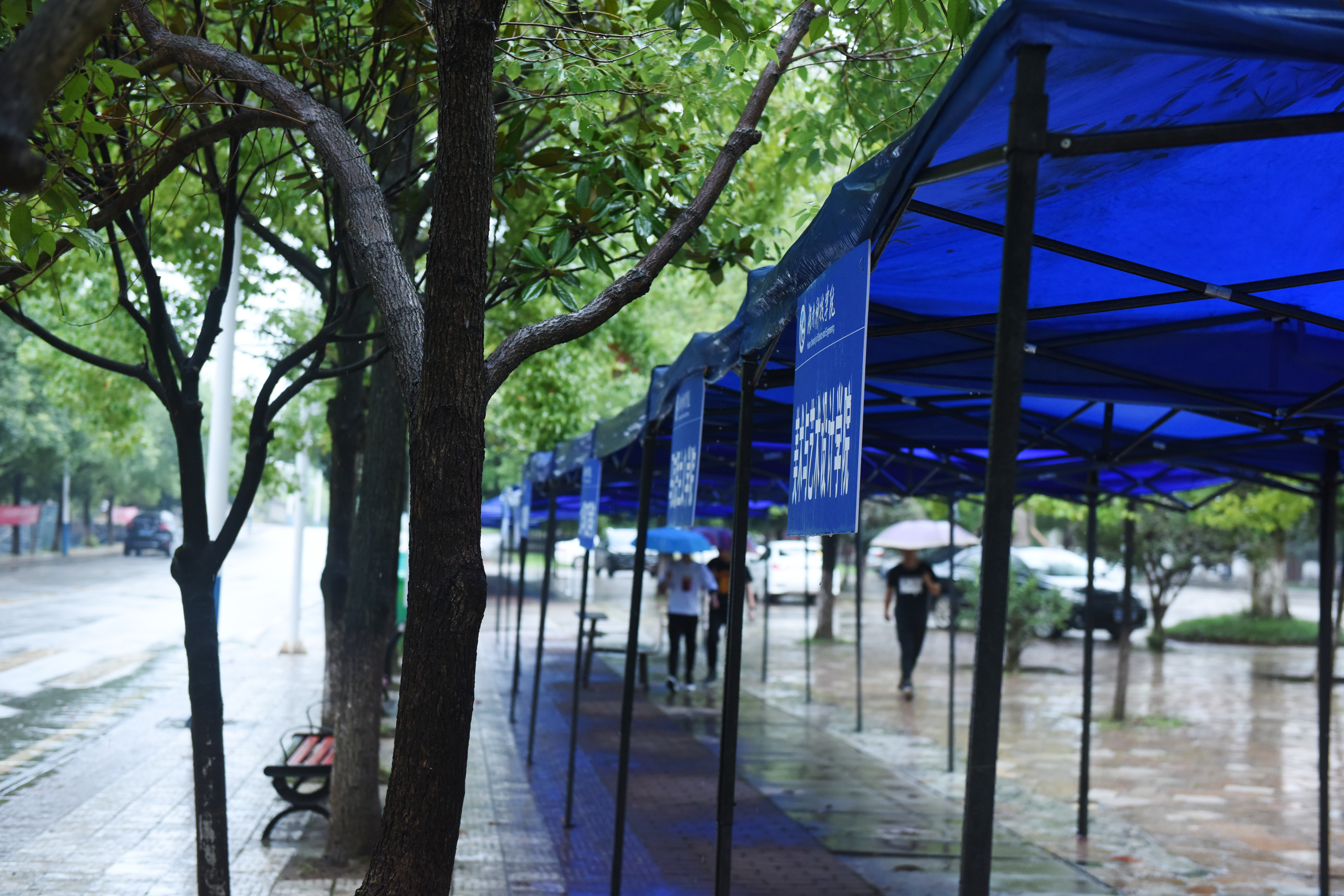 在综合教学楼前,迎新帐篷已经摆放整齐,正在静候“萌新”到来