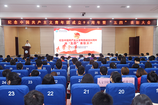 本网讯 为深入学习贯彻习近平新时代中国特色社会主义思想,进一步继承和弘扬“爱国、进步、民主、科学”的“五四”精神。5月3日下午,学校举行纪念中国共产主义青年团成立96周年暨“五四”表彰大会。党委书记陈弘、校长曾宝成、党委副书记唐艳明及学生工作领导小组成员,各教学学院党总支书记、副书记,分团委书记,全体辅导员,教工团总支委员,青年师生代表近千人与会。会议由副校长程智开主持。