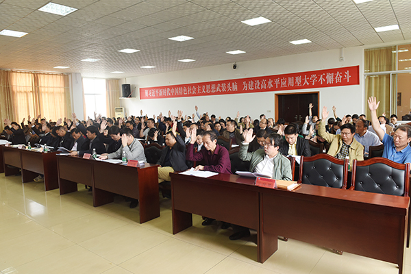本次大会应到代表150人,实到代表121人,因事因病请假29人,符合法定人数。会议采取举手表决方式审议并通过了《安博官网app高等学校教师(含实验技术)系列专业技术职称(职务)评审工作实施方案》。