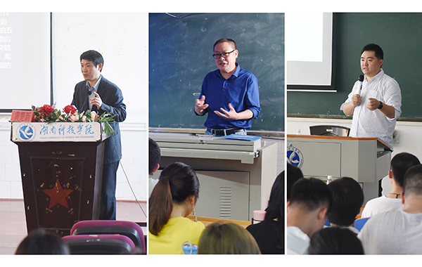 随后,六位来自北京的优秀校友——北京校友会会长、中青世纪投资公司总经理、80届化学专业校友张亚红;北京校友会顾问、中国社科院新媒体研究中心主任、86届英语专业校友黄楚新;中国农科院首席研究员、80届数学专业校友李宁辉;曾任教于我校,现为中国传媒大学教授、博导的唐培林;中国铁道科学研究院研究员、88届英语系校友周新军;北京电视台编导、2007届现代教育技术系校友张建强分别举行了学术讲座、创业分享会。黄楚新、李宁辉、唐培林、张建强、周新军分别以《互联网+传媒融合发展现状及趋势》《中国粮食安全与政府行为》《内外节奏的契合》《做一个不被淘汰的媒体人》《中国证券市场存在的问题及改革方向》为题作学术报告,向同学们讲述了各专业的发展潜力、未来的研究热点领域。张亚红以自身创业历程,与大家分享创业心得与经验。