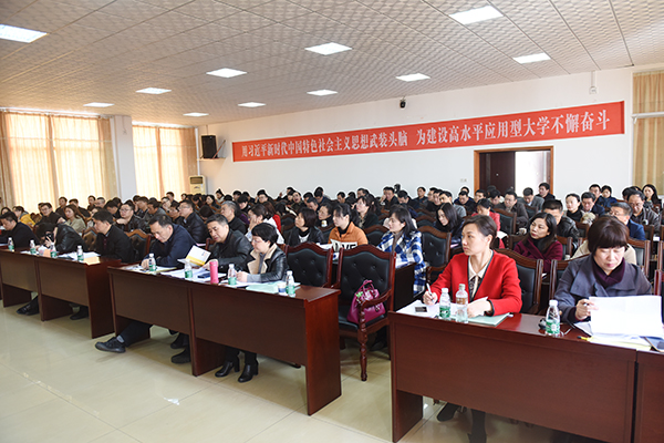 刘国华以“以十九大精神武装头脑 打好高校意识形态领域阵地战”为主题作习近平新时代中国特色社会主义思想和党的十九大精神专题辅导报告,全面分析了意识形态的作用与当前的斗争态势,深度评析了需要高度警惕的几种错误思潮,并从“坚持马克思主义指导地位 掌握领导权、弘扬社会主义核心价值观 唱响主旋律、传承中华优秀传统文化 树立自信心、强化抵制错误思潮的责任感 增强敏锐性、强化网络建设和监管工作 掌控话语权”等五方面对如何在意识形态领域打好阵地战进行了深刻解读。