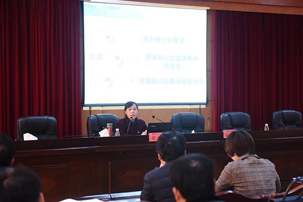 本网讯 为进一步深化党校课堂教学改革,加强党校教师的学习交流,12月18日下午,学校党校举行研讨式党课教学专题培训,邀请马克思主义学院管敏老师主讲,与大家分享研讨式党课教学的经验与体会。