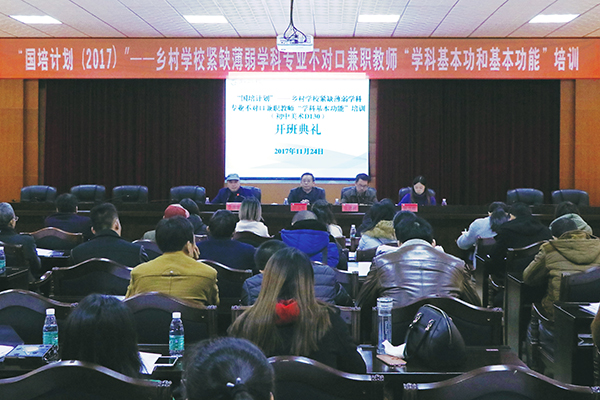 本网讯 11月24日上午,国培计划(2017)乡村学校紧缺薄弱学科专业不对口兼职教师“学科基本功和基本功能”培训开班。副校长郑山明出席。