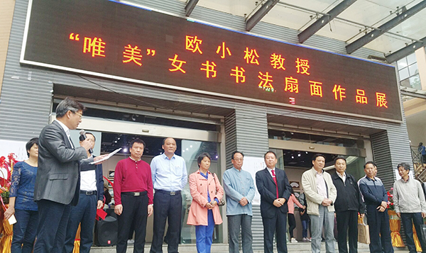 本网讯(记者 蒋方)10月11日上午,欧小松“唯美”女书书法扇面作品展在我校美术与设计学院美术馆开展。副校长宋宏福,副校级督导、工会主席陈仲庚及书法艺术爱好者观展。