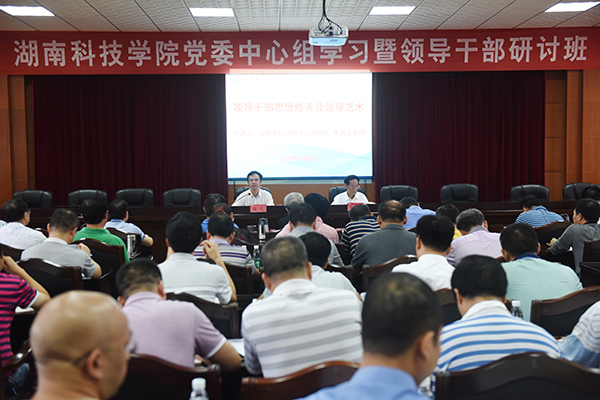 湖南省社会科学院原院长、博士生导师、国家社会科学基金项目评审会专家、享受国务院政府特殊津贴专家、长沙县开慧村党支部第一书记朱有志紧紧围绕中层干部应当具备的素质与能力这一主题展开,他提出六个重要观点:一是本科大学的中层干部应具有教育家、政治家的情怀与素养;二是要按照习近平总书记提出的好干部的五项重要标准来严格要求自己;三是要灵活运用辩证法来开展工作;四是高校中层干部应当具有“忠、勇、智、仁、公”的修养模式;五是要懂“四会”,即会育人、会带人、会管人和会帮人;六是要提高“四力”即执行力、团结力、承受力和影响力。他希望全体干部把提高思想修养和工作艺术作为终身必修课,助力学校各项事业取得更好地发展。