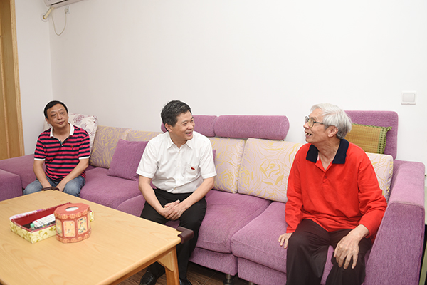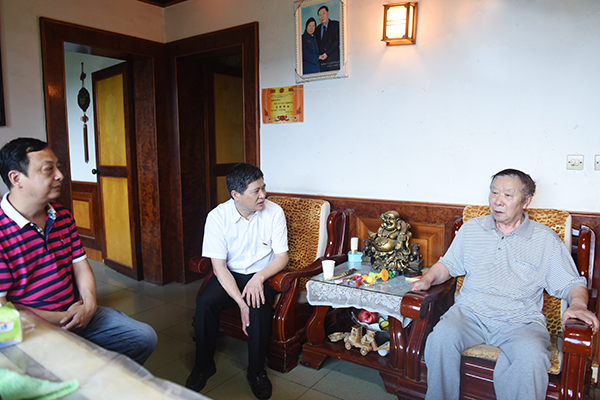 龙技荣老人今天看上去精神不错。唐艳明向老人送上节日的问候和祝福,希望老人照顾好身体,安享晚年。唐艳明还来到唐谨孝、王敦惠、邓瑞龙、冯培成老人家中,唐艳明对老党员同志对学校事业发展的关心表示感谢。他说,“你们是大家学习的楷模,我们都应该向老同志看齐,向老同志们学习。”唐艳明希望老同志们继续关心学校发展,多提宝贵意见建议。