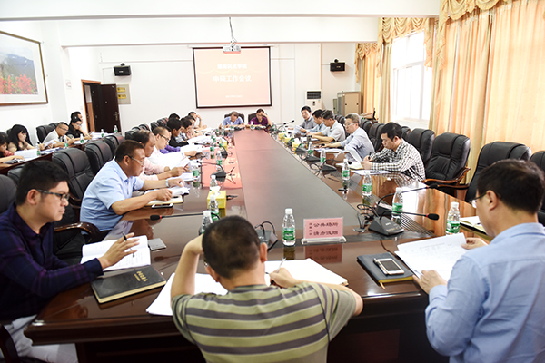 发展规划与学科建设处处长潘剑锋传达了国务院学位委员会《关于印发< 博士硕士学位授权审核办法>的通知》和《湖南省2017-2020年新增博士、硕士单位授予单位立项建设工作方案》等有关文件精神,并就《2017年安博官网app硕士学位授权申报工作方案》作了相关说明。
