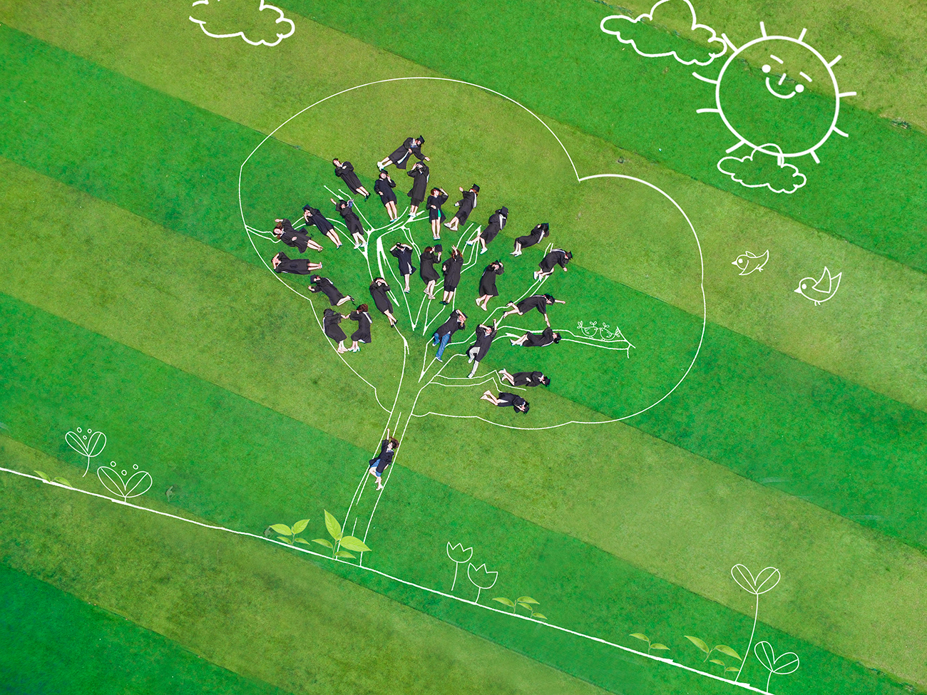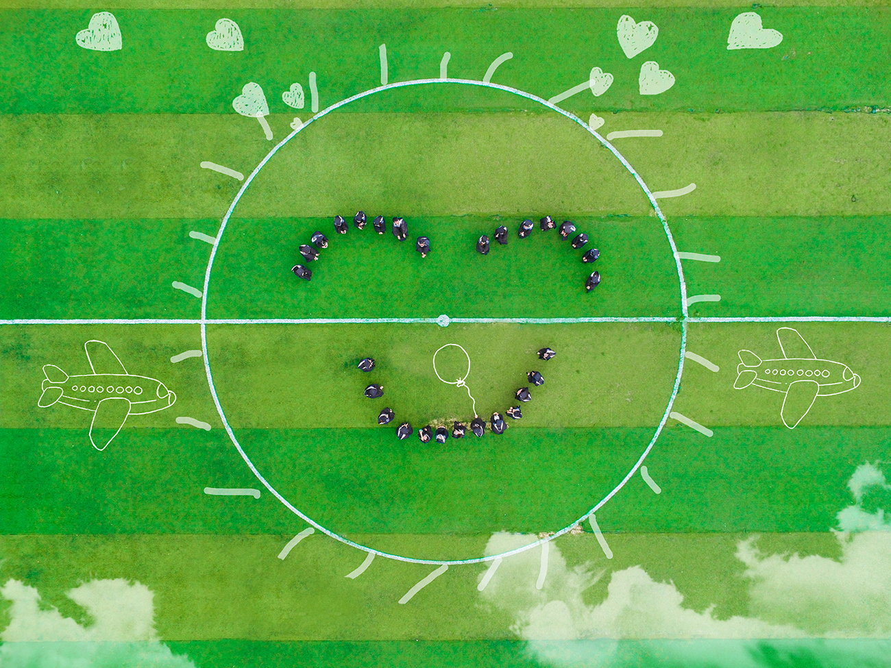 以足球场为背景,用航拍器做眼睛,摆出创意造型,配上后期设计,用一幅幅妙趣横生的画面来纪念自己的大学时光。近日,我校毕业生借助无人机拍摄创意毕业照。他们通过拍摄创意毕业照的方式“和大学说再见,却不跟青春道别!”