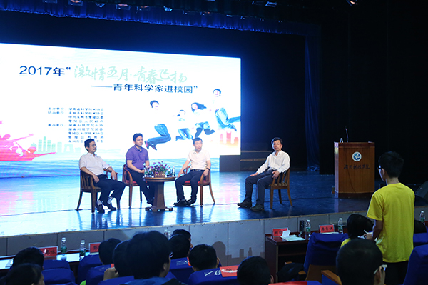 巡回演讲活动现场,湖南省交通规划勘察设计院总工程师彭立研究员、湘潭大学材料科学与工程学院王金斌教授、湖南大学博士生导师张德咏教授三位青年科学家分别从各自的学科领域出发,以生动活泼的语言、丰富的个人成长经历为青年学子献上一场精彩绝伦的科学盛宴,激励学生们要怀揣梦想,脚踏实地地创造精彩人生。演讲结束后,他们还与同学们进行互动交流,现场气氛热烈。