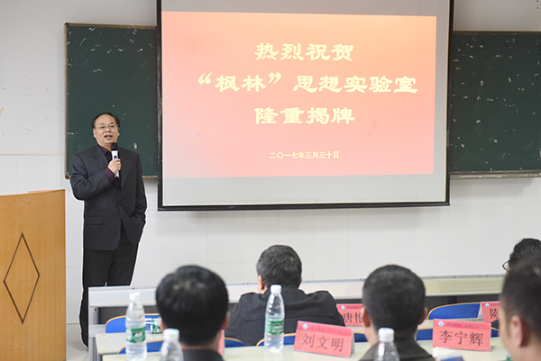本网讯 3月30日下午,我校在逸夫楼大厅举行“枫林”思想实验室揭牌仪式。校党委书记陈弘、校长曾宝成及校领导唐艳明、李常健出席。仪式上,曾宝成与中石油东海燃气公司董事长、北京枫林公益基金会会长、北京校友会会长、80届化学专业校友张亚红为 “枫林”思想实验室揭牌。