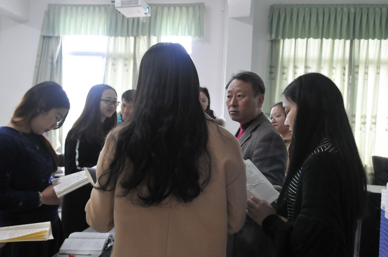 欧华恩院长和青年教师交流教学中遇到的疑惑,他喜欢和青年教师一起交流探讨,这样可以更好地对学生和教学工作进行了解。