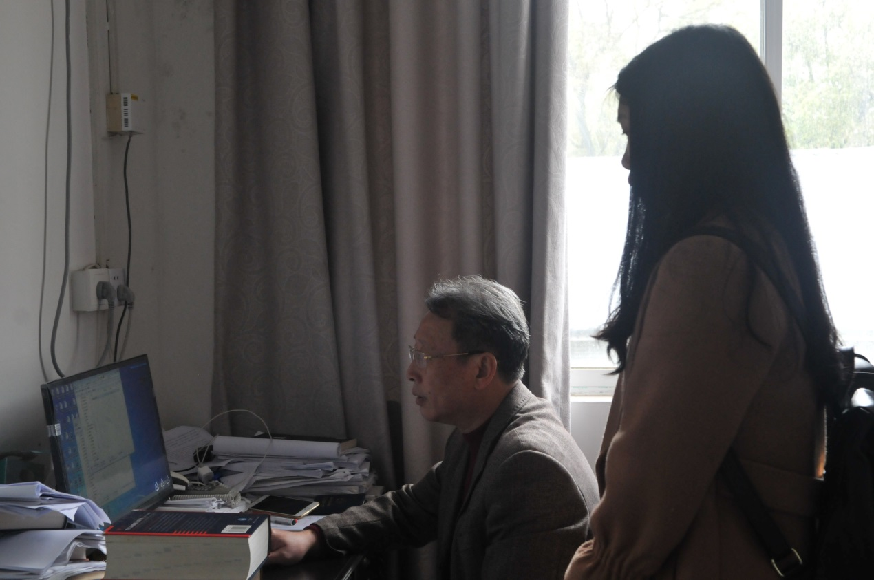 日常事务繁忙,欧院长抽出休息时间指导学生论文,平日里和善的欧院长认真工作时却很严肃。