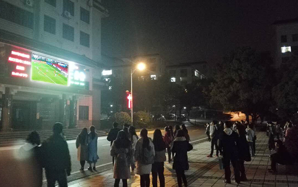 当整场比赛结束,弘毅楼电子屏幕下一阵欢呼,在场师生共同为国足给力的表现点赞,很多同学难掩激动的心情,纷纷发表了自己内心的想法。
