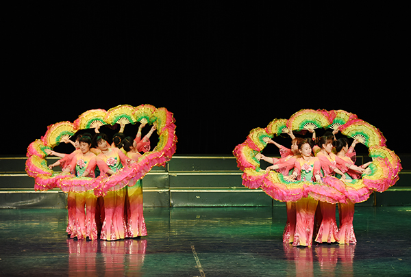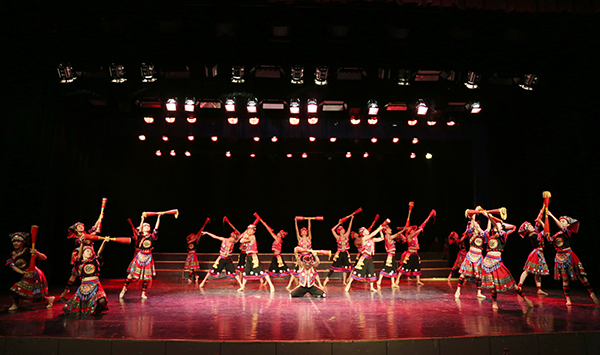晚会节目异彩纷呈夺人眼球,时而舞袖翩翩,步履轻盈;时而歌声婉转,余音缭绕;时而乐趣横生,掌声阵阵......台上演员们认真投入的表演精彩迭出,为现场观众带来一场视听盛宴。开场舞《祖国您好》一群身穿艳丽民族服装的表演者载歌载舞,轻快的舞步、动人的舞姿让现场观众纷纷入迷;歌曲《满城尽带黄金甲》则由外籍教师以民族唱法配合钢琴演奏,这种中西结合的新鲜唱法别有一番风味;祁阳小调《新农村建设百花开》直白通俗的地方说唱,传达出党的惠民政策和新农村建设给农民带来了幸福新生活的喜悦之情;湖南花鼓戏《刘大娘笑呵呵》则将说白与表演完美结合,浓浓的乡土气息透露出农民的朴实善良;祁阳小调《竹山美食几多宝》则用欢快诙谐的曲调将各种传统美食的做法一一描述,让人沉醉其中;独唱《国色天香》以反串的形式,凭多变的唱法惊艳全场,赢得观众掌声阵阵。晚会在瑶族姑娘和瑶族小伙带来的瑶族舞蹈《过山》中落下帷幕。