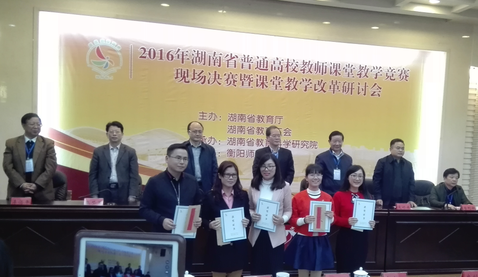 2016年已接近尾声,回顾这即将过去的一年,我经历了很多,也成长了许多,其中最使我难忘的是,参加了由湖南省教育厅、湖南省教育工会联合主办的湖南省普通高校教师课堂教学竞赛,获得了2016年湖南省普通高校教师课堂教学竞赛一等奖及“湖南省普通高校教学能手”称号。