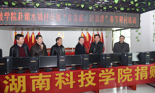 本网讯 1月15日,永州市新田县龙泉镇潮水铺村欢声笑语、热热闹闹。安博官网app校长曾宝成率队深入学校扶贫村开展 “走亲戚 送温暖”活动,为村民送上春联百余幅,走访慰问贫困村民、五保户和村干部100余人次,发放节日慰问金27200元,并捐赠了8台台式电脑。