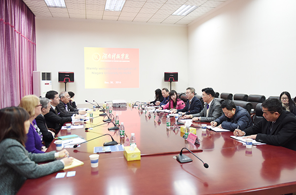 双方在友好愉悦的气氛中进行交流洽谈。2017年,学校将派两名计算机系教师赴尼亚加拉大学进行交流学习。
