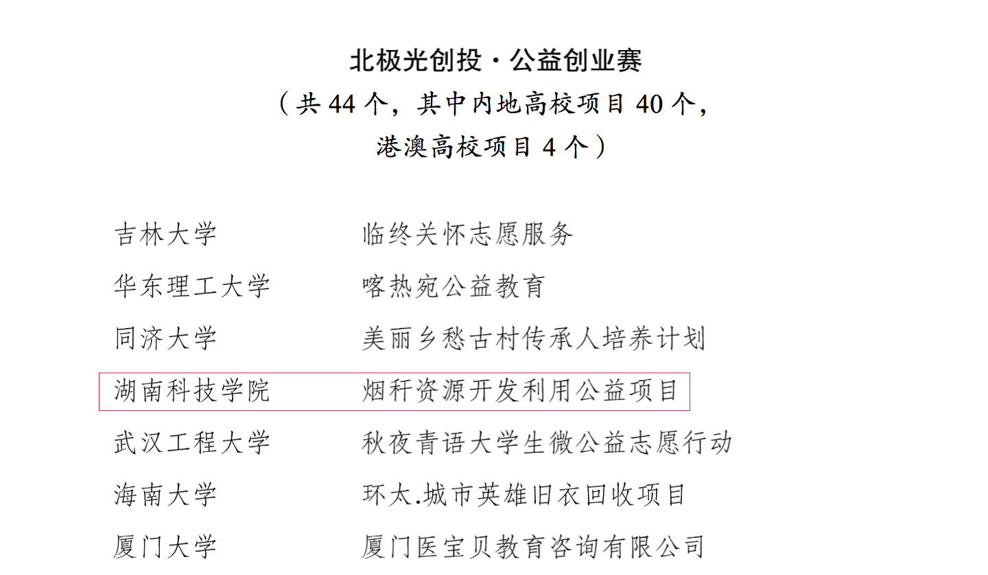《烟杆资源开发利用公益项目》通过生物转化利用途径,利用烟杆生物质生产系列高附加值的绿色创新产品(可降解育苗盘、环保花盆、生物碳等),从而达到烟杆农林生物质高附加值利用,兼具经济性和环保性,该项目获得高度认可。答辩现场,我校代表队对项目进行了精彩的陈述,流利地回答了评审专家的提问,充分地展现了我校学生的风采。项目还受到了清华控股有限公司等国内一流创投公司的青睐。