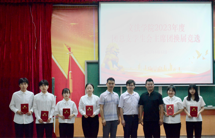 6月12日,文法学院于明德楼100举行2023年主席团换届选举会议,文法学院党总支书记张能泉、党总支副书记欧阳智超、团总支书记张健、全体辅导员及全体团学干部、班长团支书参加本次会议。