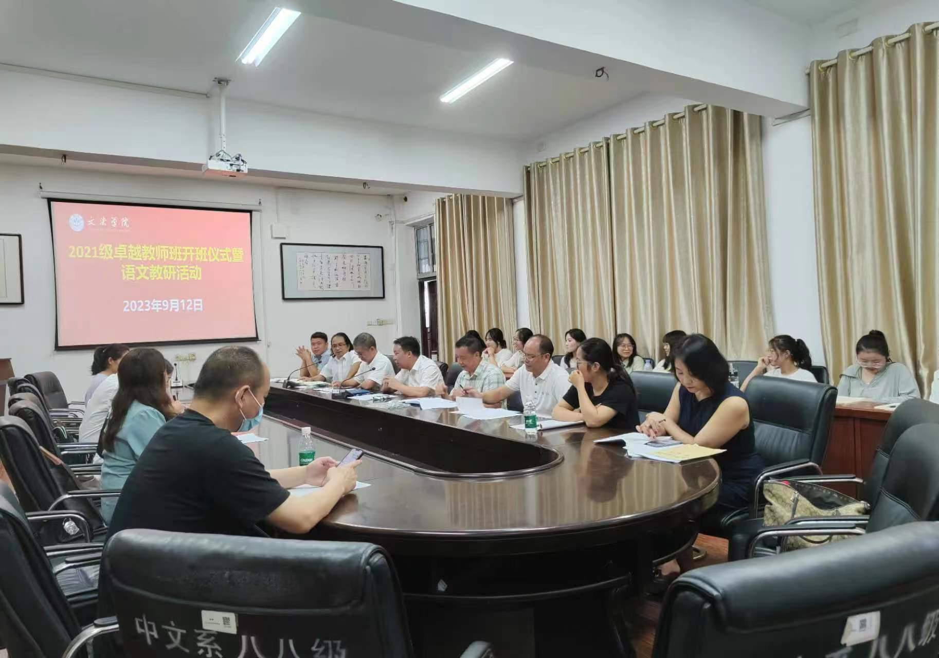 会上,谷显明介绍了文法学院卓越教师班办学历史和成效。2018年,为贯彻落实教育部等五部门印发的《教师教育振兴行动计划(2018—2022年)》,全面加强师范类专业内涵建设,提升师范生专业技能,学院创办卓越语文教师培养实验班。经过5年的建设,学院卓越教师班先后培养出60余名卓越师范生,在师范生技能大赛、大学生写作大赛等竞赛中荣获一等奖2项、二等奖6项、三等奖15项。