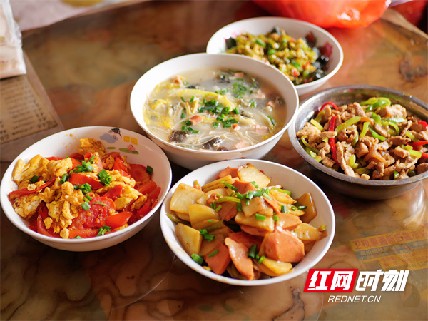 活动现场,学生志愿者化身秦奶奶的“贴心儿女”,纷纷积极行动起来。洗菜、配菜、起锅烧油……志愿者们有条不紊,分工明确,小小的屋子里很快就“香气四溢”。瘦肉鸡脚汤、上汤娃娃菜、肉沫莲藕、芹菜炒鸡蛋……志愿者们换着花样为秦奶奶做“暖心饭”,端上一道道热腾腾的菜肴。具有衡阳风味的秘制凉拌皮蛋是志愿者于蓉蓉的拿手好菜,“我们给奶奶带来的既是一餐饭,也是关怀和陪伴。”饭桌上她动情地说。