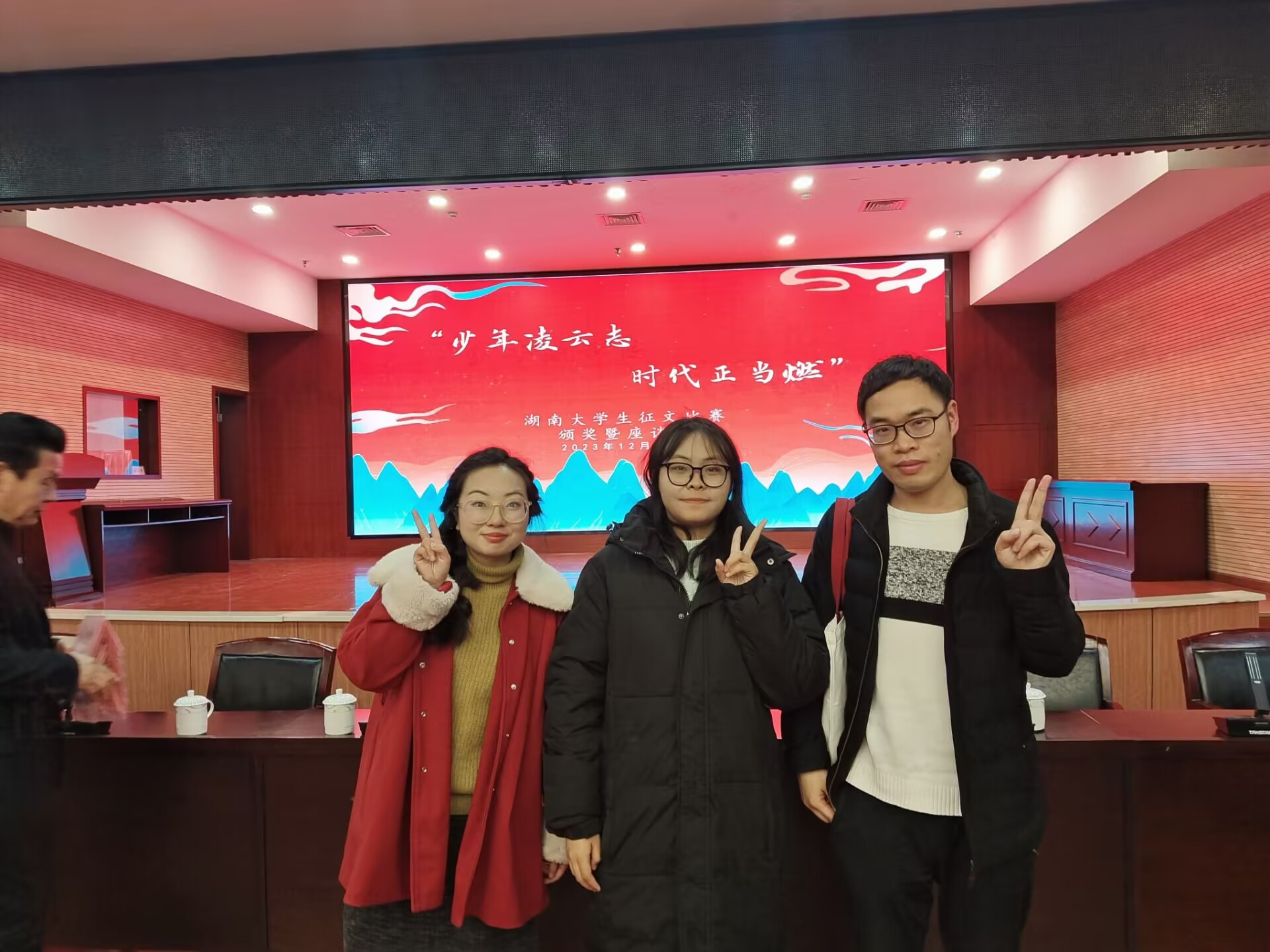 本网讯(通讯员 周佳 唐文倩 蒋梦娟 )12月15日下午,我校西山文学社获奖代表赴毛泽东文学院参加“少年凌云志,时代正当燃”湖南大学生征文颁奖典礼暨座谈会。