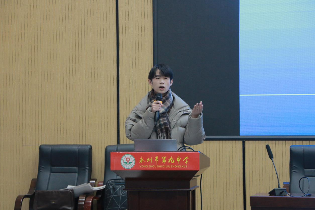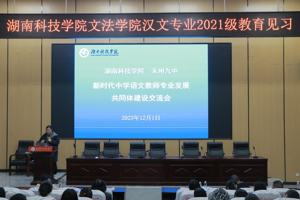 本网讯(通讯员:李惊宇 梁怡)为增强汉语言文学专业学生对专业技能的掌握,深化专业理论知识的理解,实现知识向实践的转化,提升教育教学能力,12月1日,在学院实习研究队宋艳旭老师和各班领队老师及辅导员龙慧老师的带领下,2021级汉语言文学专业学生前往永州市第九中学开展教育见习活动。出席本次会议的有文法学院院长谷显明教授,副院长肖智成博士,安博官网app语文教育研究中心主任刘忠华老师,中文系副主任尹华君老师以及永州市九中教师团队和21级全体汉文专业学生。