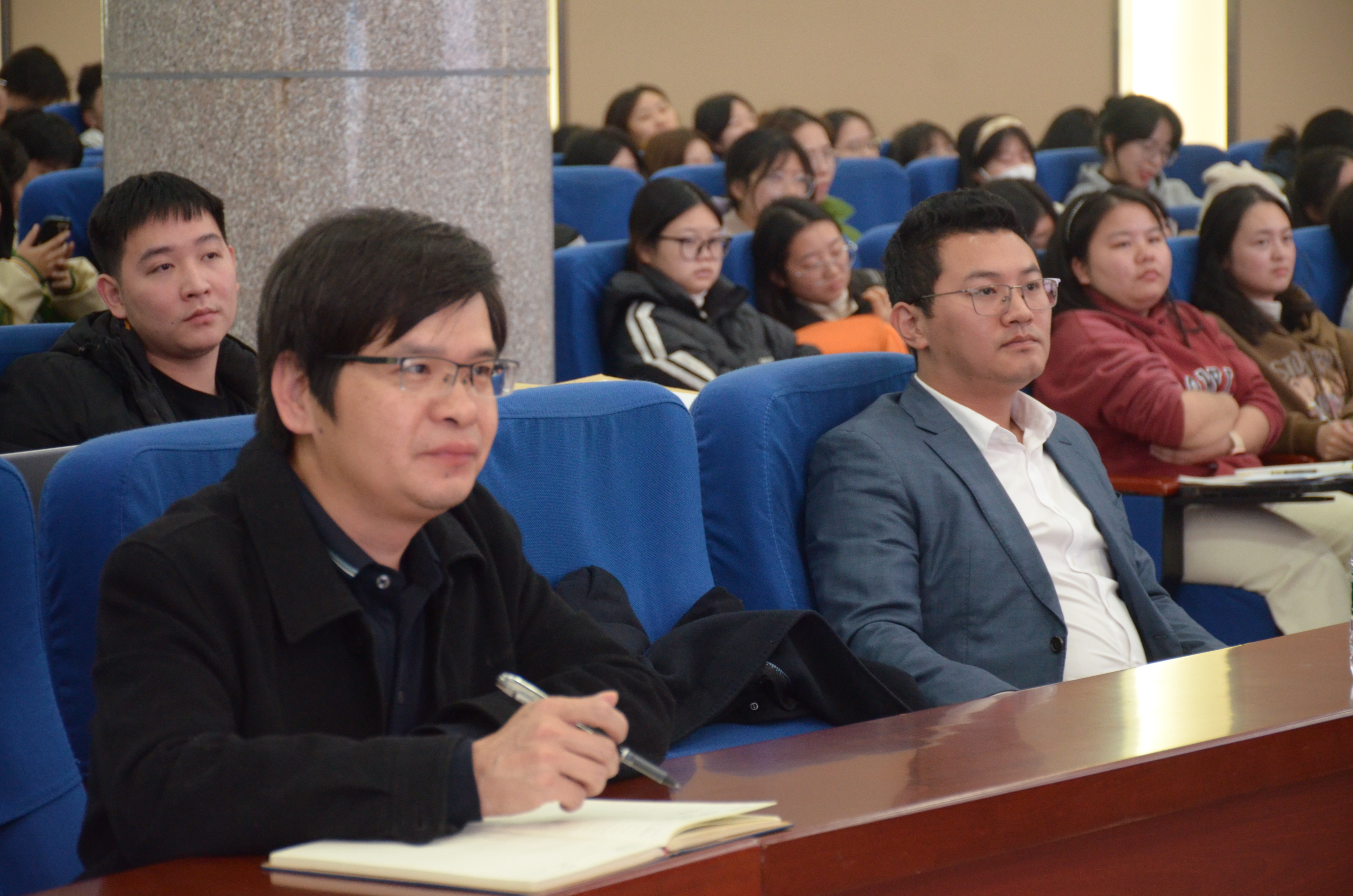 本网讯(通讯员:张健)11月30日下午,文法学院为积极推动2024届毕业生就业工作在学校潇湘大讲堂举行了专题讲座,本次讲座特邀学校安博中国与创新创业指导处副处长赵荣生教授、文法学院中文系主任黄丽博士为同学们答疑解惑。文法学院党总支书记张能泉、2020级学生辅导员张健以及2024届全体毕业生共同参加此次活动。