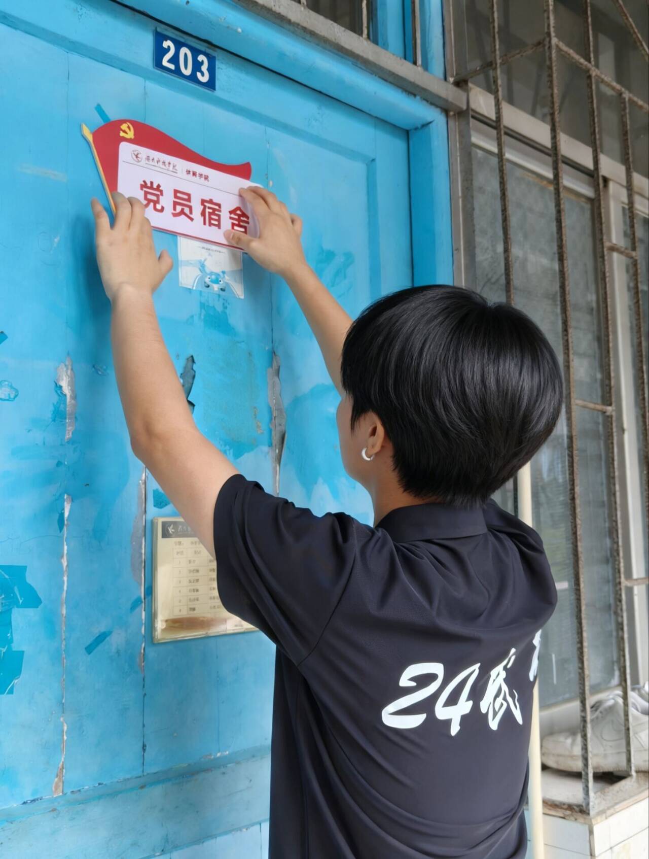 本网讯(通讯员 贺容容)近日,体育学院在学生公寓区举行了“党员宿舍”挂牌活动。该活动由学院劳动生活部组织实施,旨在增强学生党员的身份认同与责任意识,发挥模范带头作用,推动建设文明和谐的宿舍环境。