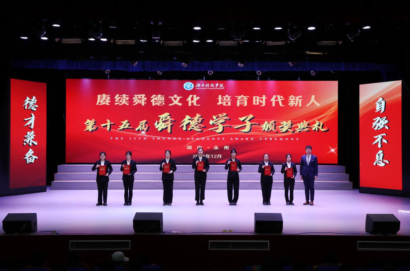 本网讯12月10日,学校举行2024年“舜德学子”颁奖典礼,104名优秀学子获表彰。校党委书记李钢,党副书记、校长黄创霞,校领导宋宏福、李常健、吴小林、陈灿军,党委委员,组织部部长杨涛,校友企业代表、安骏物流公司公益基金会管理部经理陈泽出席典礼。