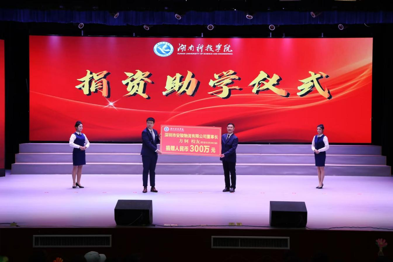 经济与管理学院2002届优秀校友、深圳市安骏物流有限公司董事长方轲捐赠300万元设立助学金,吴小林代表学校接受捐赠,远在巴西的方轲还通过视频表达了对母校的感恩之情和助力母校教育事业发展的心愿。