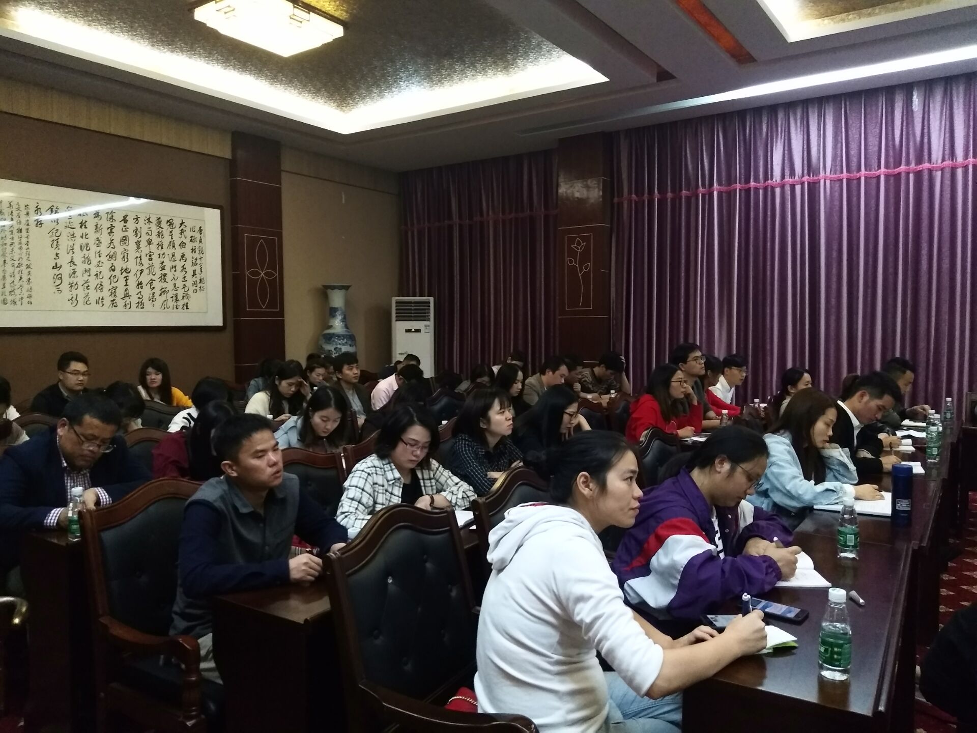 本网讯 11月5日晚7点,安博官网app2018年第一期辅导员学术沙龙活动在行政楼八楼三会议室举行。各院党总支副书记、全体辅导员和学工部相关人员参加了本次活动。活动由学工部副部长胡敏辉主持,学工部长唐华山、经济与管理学院学工办主任王君作主要发言。