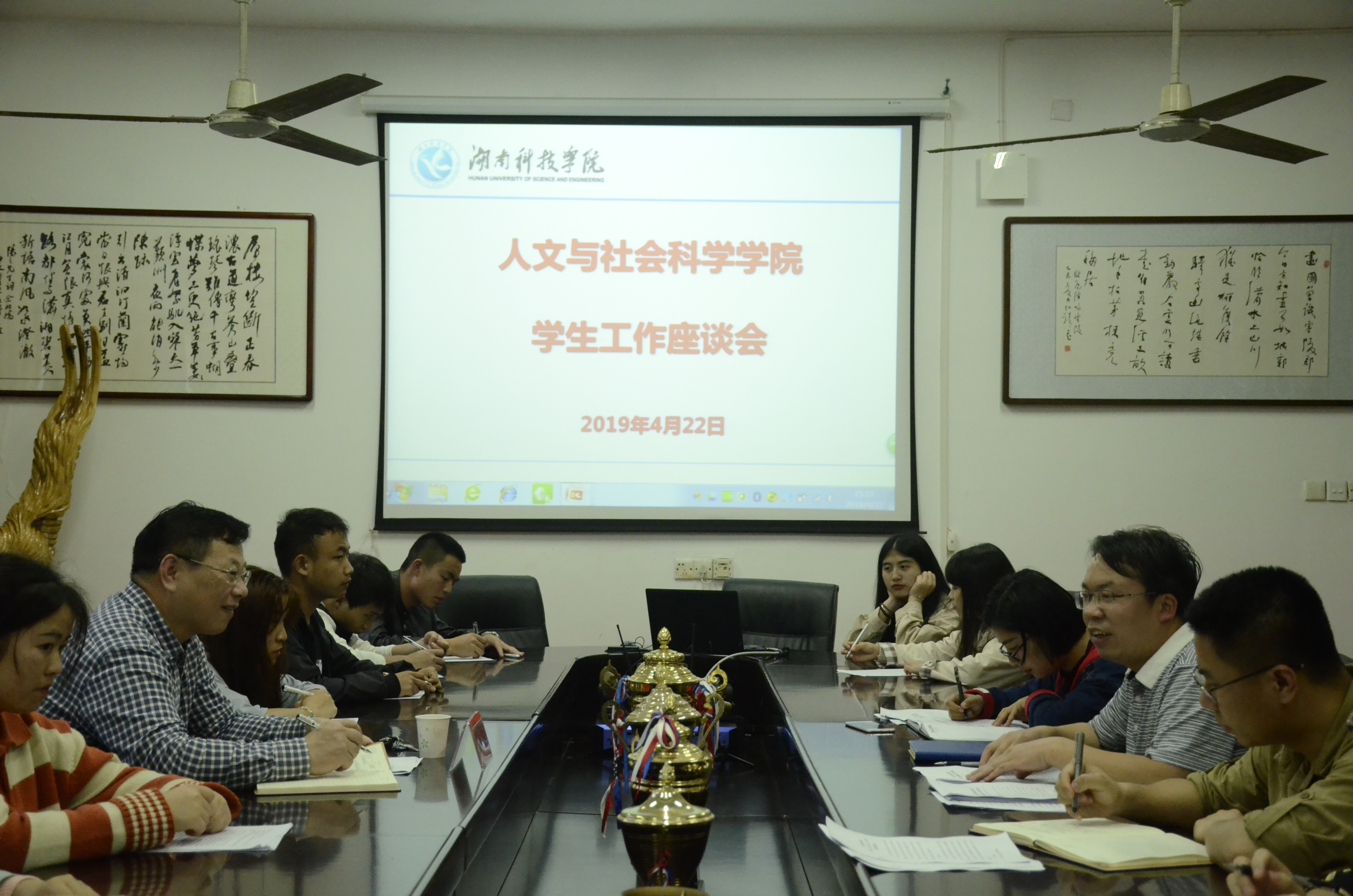 本网讯(记者张楚婷)4月22日下午3点,学工部长唐华山一行来我院开展学生工作调研,旨在了解学院在学生思想育人、管理育人、学风建设、学工队伍建设等方面的现状及存在问题,人文与社会科学学院党总支书记谷显明、党总支副书记李观求、全体辅导员、班主任和部分学生代表参加了座谈会。