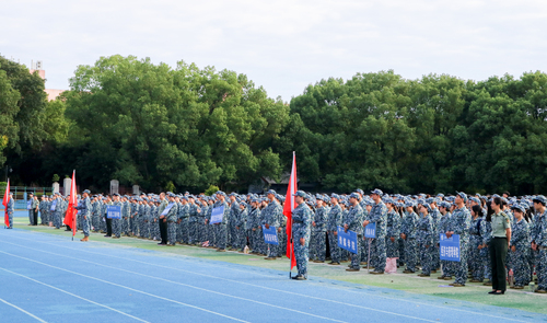 据悉,本次军训共有4112人参训,设1个军训团,4个营,68个连,为期14天。学校军训工作领导小组成员、各学院党总支副书记、2023级学生辅导员、班主任及2023级全体参训学生、军训教官参加动员大会。