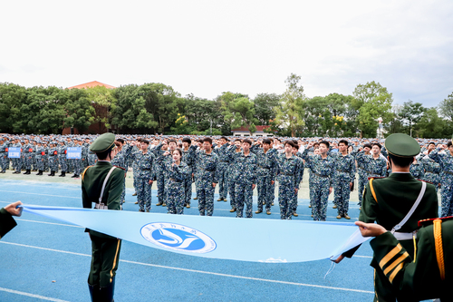 全体2023级新生面向校旗进行了学子宣誓。