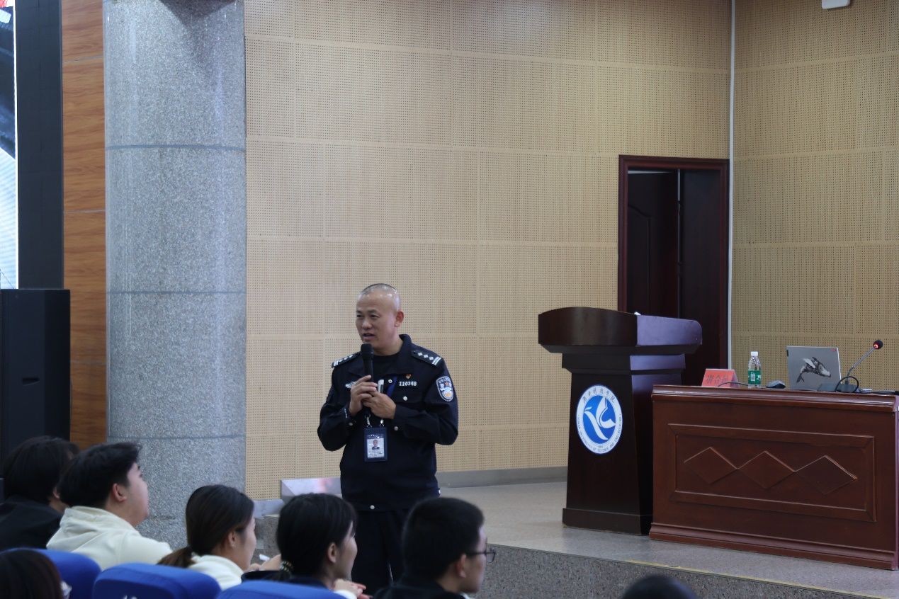 为提升我校学生交通安全意识,普及交通安全常识,2023年10月26日晚,安博官网app交通安全专题报告会在潇湘大讲堂正式举行。本次会议,我校邀请零陵区交警大队队长唐合民为大家开展讲座,学生工作部副部长胡敏辉主持报告会,参加人员为我校主要学生干部。
