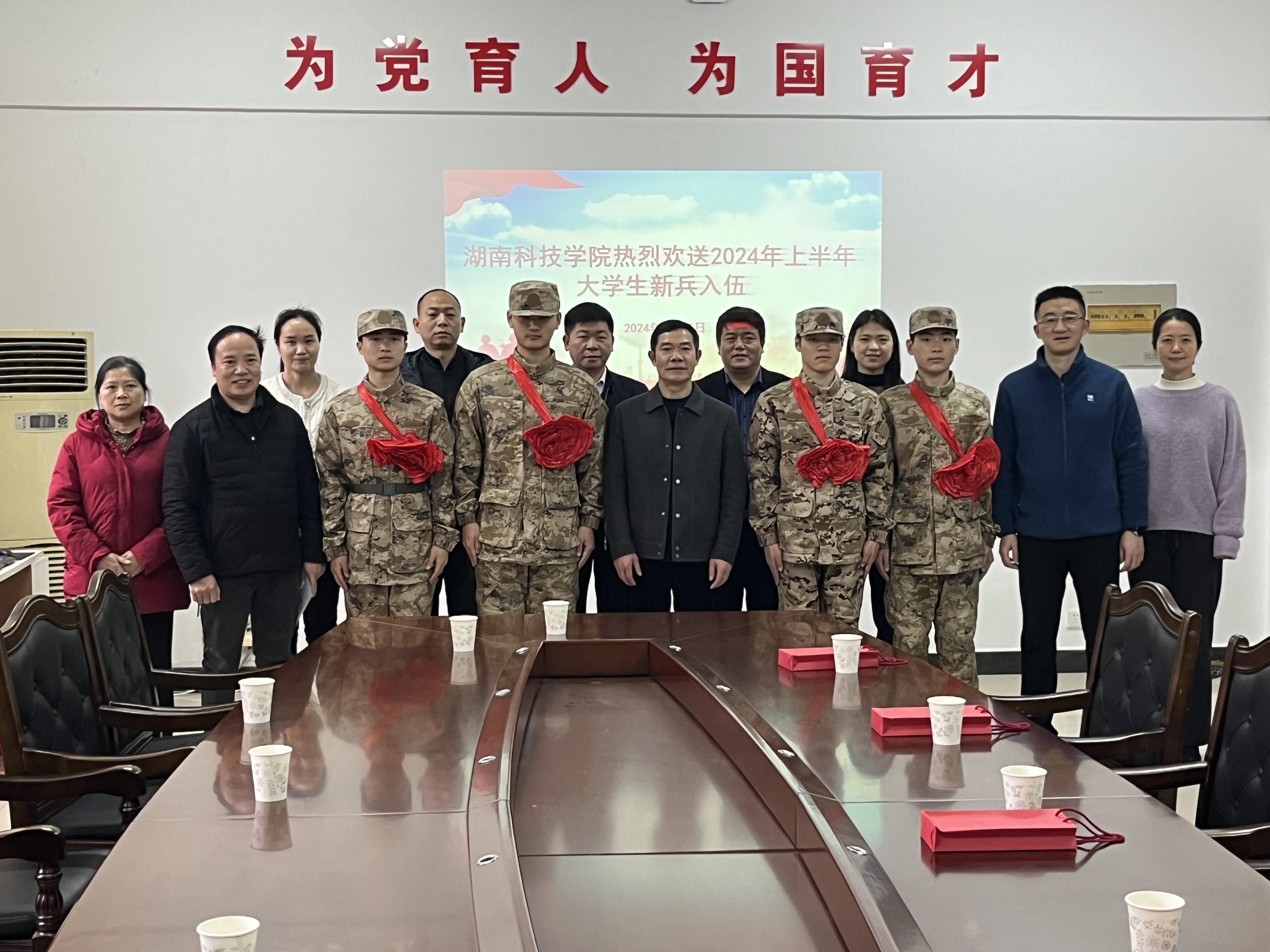 吴小林代表学校祝贺应征入伍的4名新兵通过严格的选拔,为入伍新兵送去祝福,并赠送入伍纪念品。他对入伍新兵提出三点期望:一是要对党忠诚,坚定不移听党话、跟党走,踔厉奋发,勇毅前行,要努力成为“有灵魂、有本事、有血性、有品德”的新时代革命军人,保家卫国,维护社会安定;二是要严格遵守纪律,练就过硬本领,锻炼强健体魄,掌握军事技能,在部队的大熔炉里勤学苦练、努力奋斗;三是要做好人生科学规划,把满腔热情化为报国之志,无论是部队发展,部队复员,还是回归大学校园,都要成为德智体美劳全面发展的社会主义建设者和接班人,在平凡的岗位上,实现自己的人生价值。
