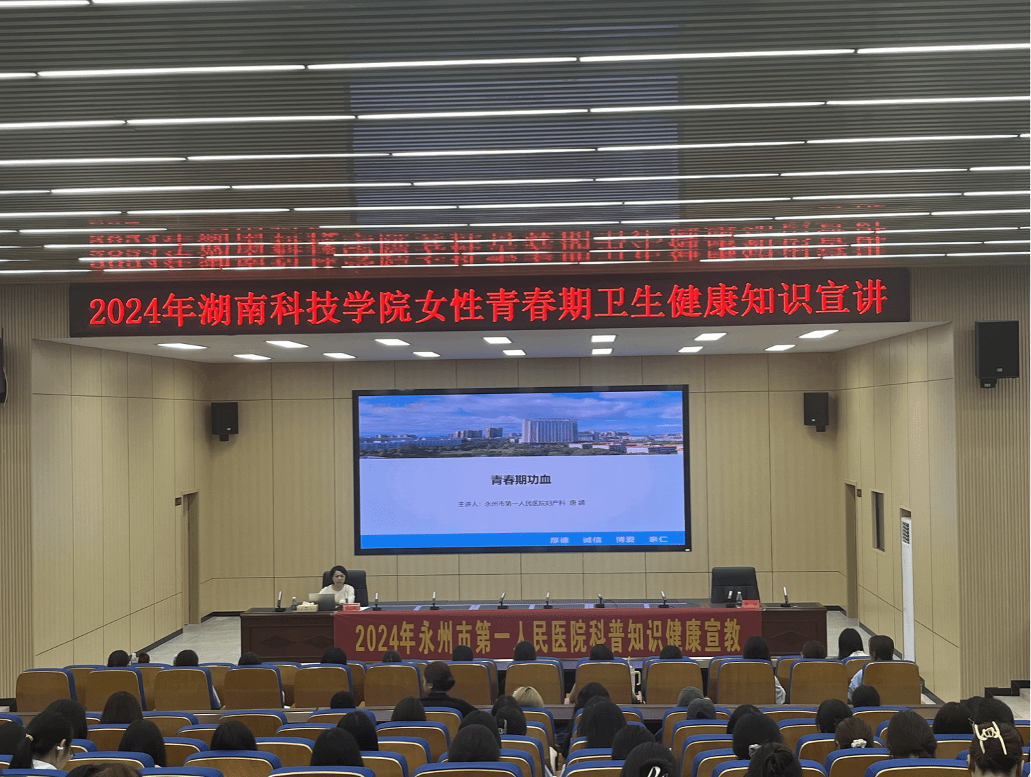 为进一步提高我校女生对青春期健康知识的认知水平,强化其自我保护意识,推动身心健康发展,学生工作部特邀永州市第一人民医院妇产科副主任医师唐婧,于我校开展2024 年安博官网app女性青春期卫生健康知识宣讲活动。