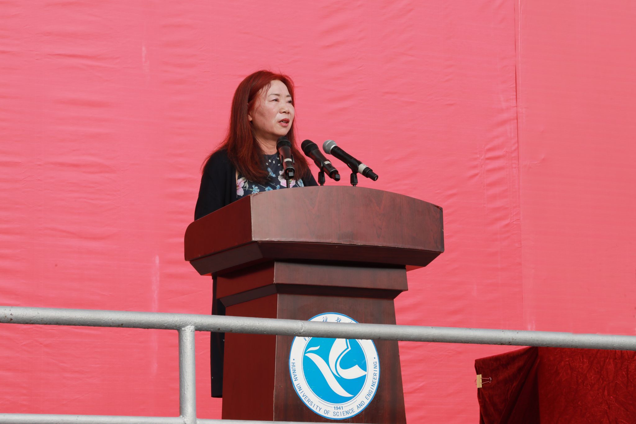 校友代表、1988届英语系毕业生邹丽娟深情回顾了在学校的成长故事,与大家分享自己的创业历程。她说强大的祖国是我们坚强的后盾,我们要热爱祖国,热爱家乡;她希望同学们心怀家国,感念母校,坚持学习,努力进步,不负青春,砥砺前行。